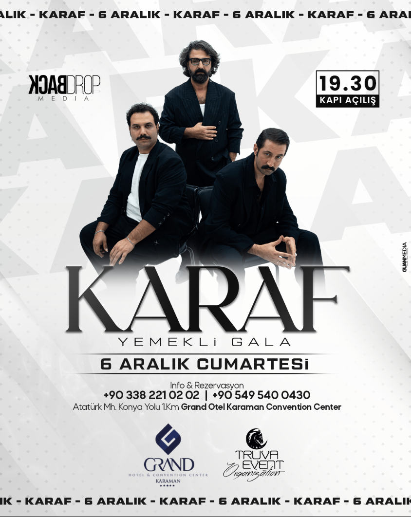 Grand Hotel Karaman, özel günleriniz için şık ve ihtişamlı ziyafet alanları sunuyor. Düğün, nişan ve mezuniyet gibi etkinliklerinizde unutulmaz anlar yaşatmak için her detayı düşünüyoruz.
